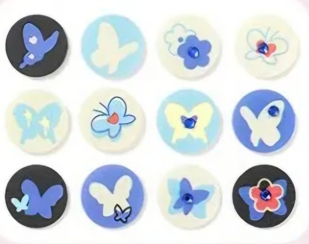 Vsebina pakiranja: 36 obližev (3 listi po 12 obližev z različnimi dizajni).